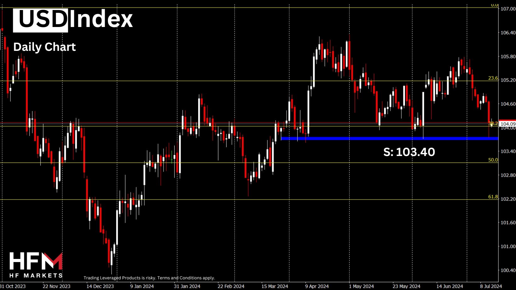 The USDIndex took it on the chin, falling to 104.07 from the high of 104.99 on the dovish Fed outlook. A lot of the weakness came from JPY as USDJPY crashed 4-handles, as there were reports of intervention. The Bank of Japan conducted rate checks with traders, reinforcing the belief that authorities had intervened in the market on Thursday to support the currency. Oil prices rallied for a 3rd day in a row boosted by the US inflation which cooled broadly in June to the slowest pace since 2021. Bets rose that the Fed will start to reduce borrowing costs this quarter. Gold corrects some of yesterday’s gains, back to 2400.